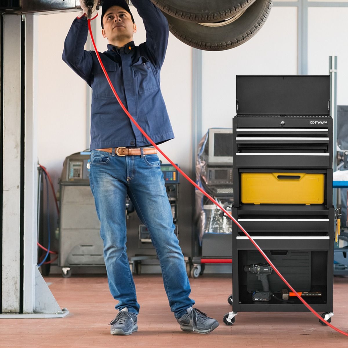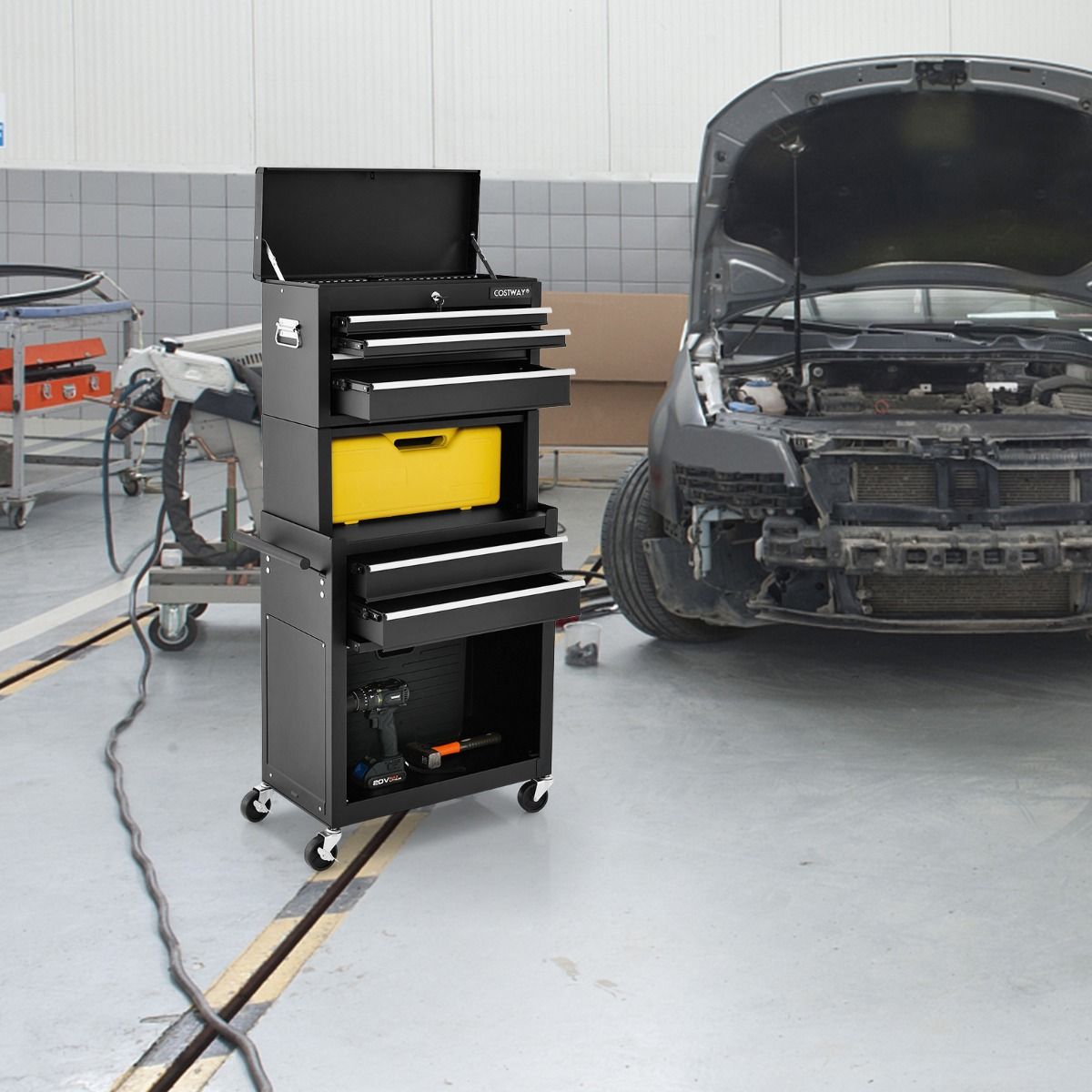 Coast Werkstattwagen mit Schubladen und herausnehmbarem Werkzeugkasten, schwarz, 61,5 x 33 x 132 cm, rollende abschließbare Aufbewahrungslösung