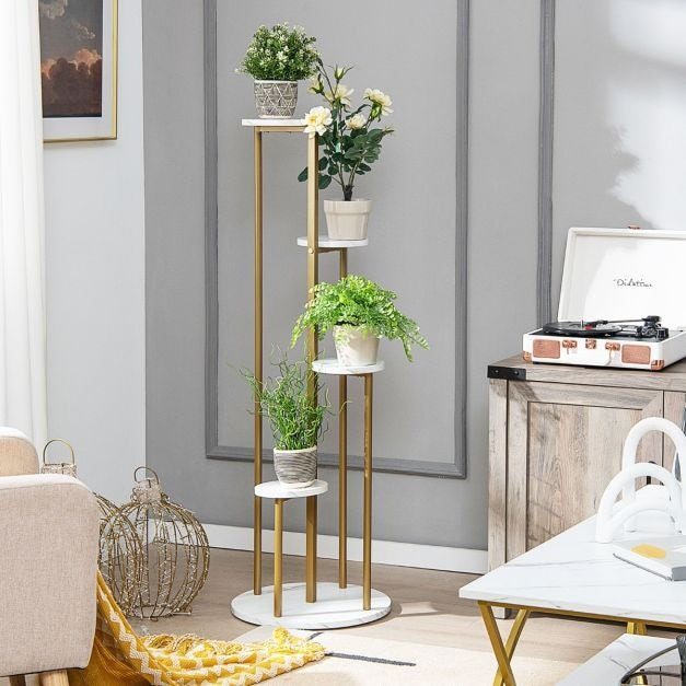 >ã€Modern & Modischer Stil】Das Pflanzenständer-Display-Regal hat einen goldenen Metallrahmen und eine künstliche Marmoroberfläche, die Ihrem Zuhause einen eleganten und modernen Stil verleiht. Und es kann weithin im Wohnzimmer, Schlafzimmer, Balkon, Büro, Empfangsbereich, Hotel, Café, Restaurant und mehr verwendet werden.