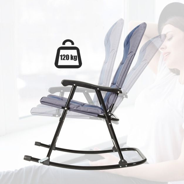 Diese zwei Schaukelstühle und der Glastisch sind eine tolle Ergänzung für Ihre Terrasse. Im Gegensatz zu normalen Stühlen können Sie sich mit ihnen viel besser entspannen. Die solide Stahlkonstruktion und das hochwertige PVC garantieren eine lange Lebensdauer. Der Tisch bietet Platz für Speisen und Getränke. Dank der dicken Polsterung, der Kopfstütze und der Rückenlehne ist ein hoher Sitzkomfort garantiert. Sicherheitsstifte sorgen für einen sicheren Gebrauch der Stühle. Dank ihrer Struktur lassen sie sich zusammenklappen und kompakt aufbewahren, wenn sie nicht gebraucht werden. Das Set ist auch ideal für Campingausflüge geeignet. Attribute: faltbare Vitrine -Design: Bei Nichtgebrauch können Tisch und Stühle platzsparend zusammengeklappt werden. Sie lassen sich auch leicht transportieren. Als Schaukelstühle bieten sie Ihnen tiefe Entspannung. Stabile und robuste Konstruktion: Der Stahlrahmen hat eine hohe Belastbarkeit. Zusätzlich sorgen Sicherungsstifte für eine zuverlässige Nutzung. Rutschfeste Untersetzer garantieren Stabilität und schützen den Boden vor Kratzern. Bequemes Sitzen: Die dicke Polsterung garantiert hohen Komfort. Die Baumwolle ist elastisch und formbar. Die Rückenlehne, die Kopfstütze und die Armlehnen sind ergonomisch geformt. Perfekte Wahl für den Außenbereich: Dieses dreiteilige Set ist eine ideale Ergänzung für Balkone, Terrassen und Gärten. Auf dem Tisch können Getränke und Zeitschriften abgestellt werden. So können Sie beim Camping oder Angeln entspannen. Kein Zusammenbau und einfache Reinigung: Stellen Sie den Tisch und die Stühle einfach nach Erhalt auf und Sie können sie sofort benutzen. Aufgrund der rostfreien und hochwertigen Materialien ist auch die Reinigung einfach. Features: 2 Schaukelstühle und 1 Couchtisch, großartige Ergänzung zu Ihrer Terrasse solide Stahlkonstruktion und hochwertiges Gewebe für lange Haltbarkeit Bank Tisch mit runder Glasplatte Stühle mit Armlehnen und weichen Kissen für Komfort Dicke und ergonomische Kopfstütze und Rückenlehne für zusätzlichen Komfort - Klappbares Design für einfache Lagerung und Transport Verriegelungsbolzen für zusätzliche Stabilität und Sicherheit, Hart-PVC, ist atmungsaktiv und langlebig Riemen verhindern Kratzer auf dem Boden Design ohne Montage speichern