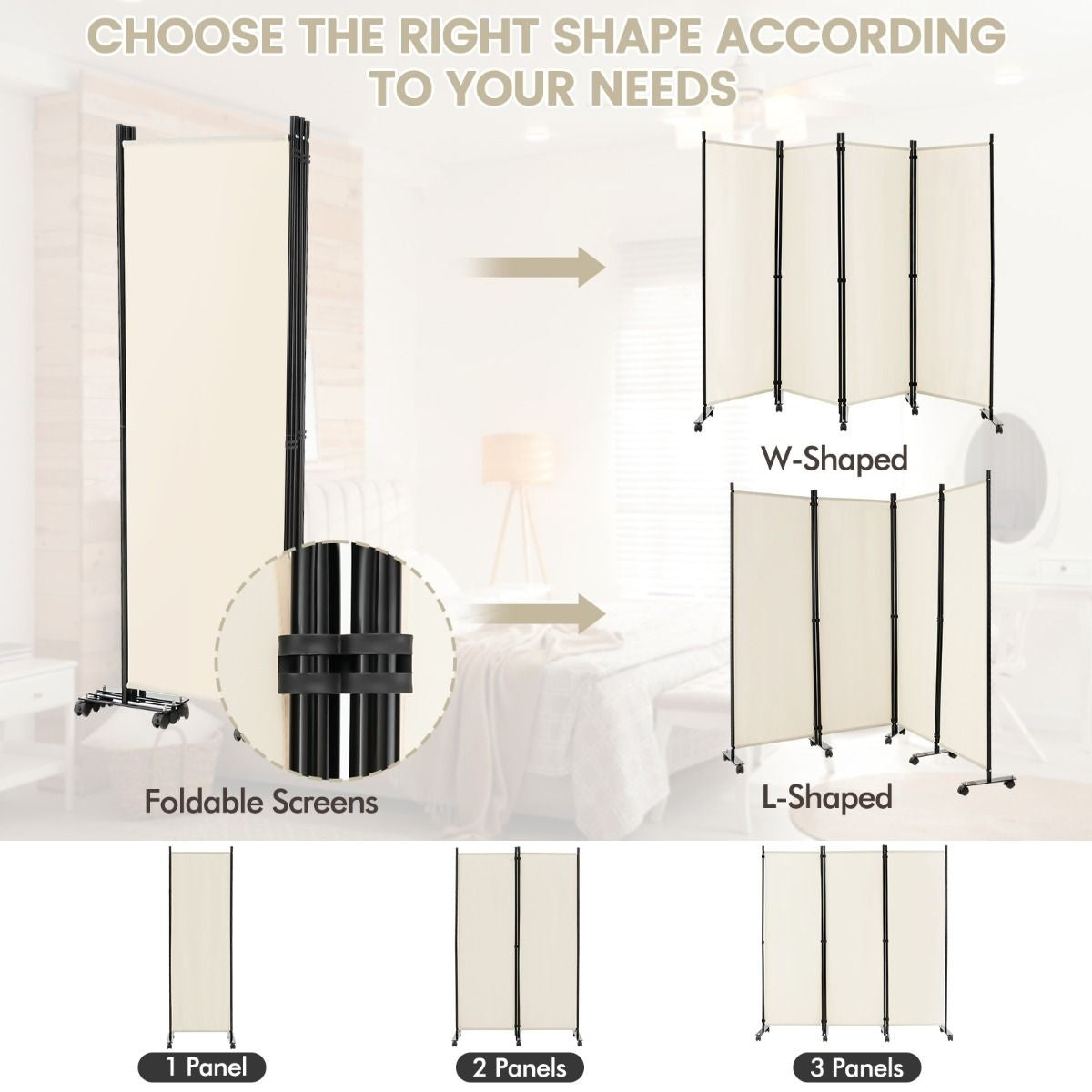 Coast Trennwand - 4-teilig - auf Rädern - faltbar - 225 x 173 cm - weiß