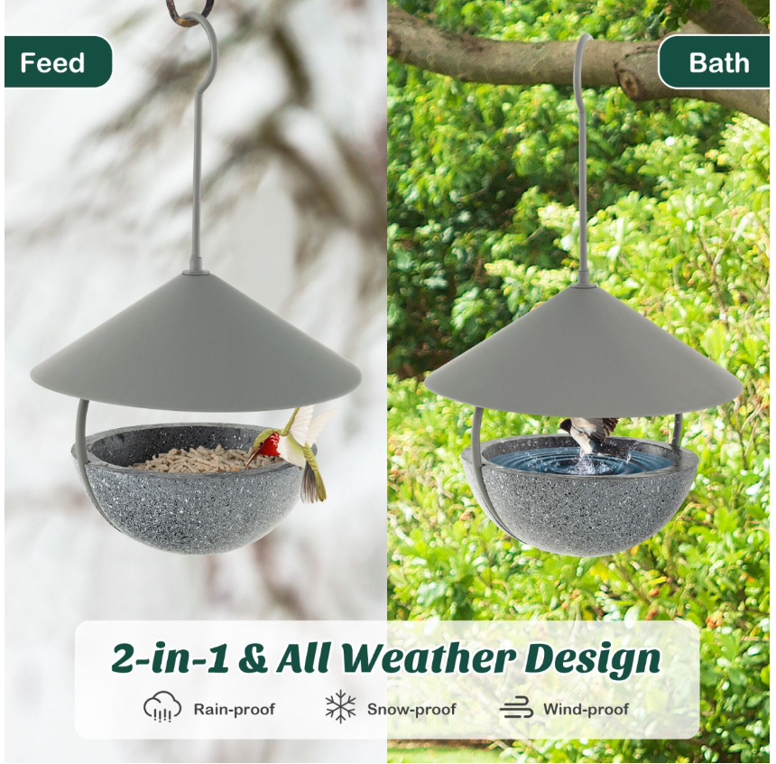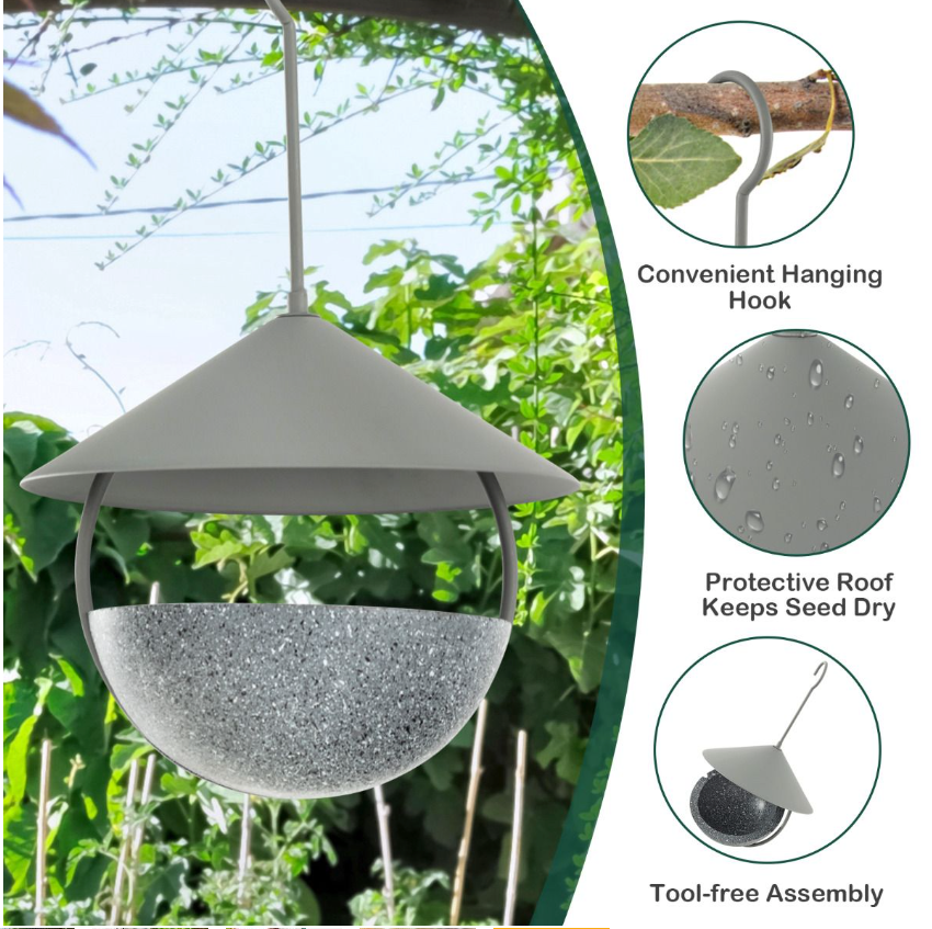 Coast 2-in-1 Vogelfutterhaus & Vogeltränke: Hänge-Futterspender (Grau)