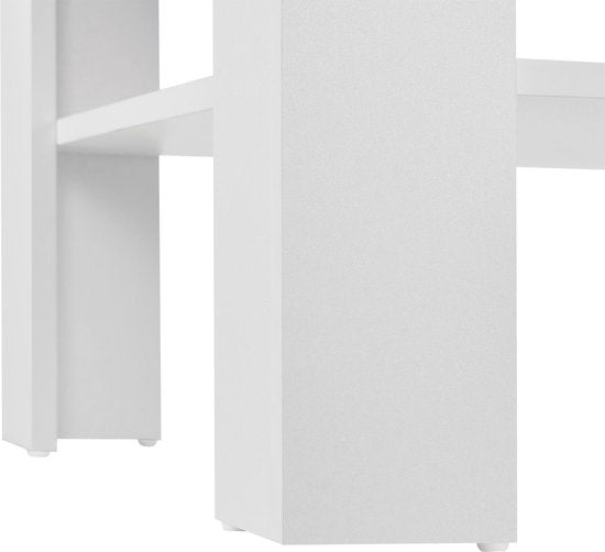 Mit seinem kompakten Design und der schlichten Optik ist dieser Tisch (weiß/Holzoptik) eine perfekte Ergänzung für fast jeden Einrichtungsstil. Mit seinen Maßen von nur 60 x 60 cm ist er perfekt für kleinere Räume oder als dezenter Beistelltisch geeignet. Dank seiner zwei Ebenen bietet er überraschend viel Stauraum für Getränke, Snacks, Zeitschriften oder Fernbedienungen. Dieser Wohnzimmertisch ist aus Holz gefertigt, wodurch er nicht nur robust und langlebig, sondern auch leicht ist. Die Melaminbeschichtung macht die Oberflächen witterungsbeständig gegen Kratzer und sorgt für eine einfache Pflege.