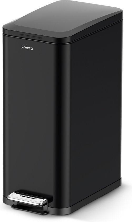 Deleca Mülleimer Prestige - 50 Liter - Schmal - Edelstahl Abfalleimer / Abfallbehälter / Tret-Abfalleimer - Mit Fußpedal und Slow Close - Mattschwarz