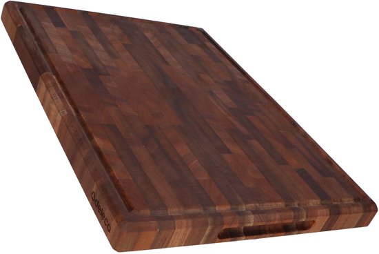 Deleca Nussbaum Kupferholz Schneidebrett - Doppelseitig mit Saftrinne / Griffe - Großes und dickes Schneidebrett - Für Küche, Langlebige Schneidebretter, Servierbrett, Käsebrett, Getränkebrett, Tapasbrett - Nussbaumholz - Ohne Kunststoff - 51x38x3,8 cm