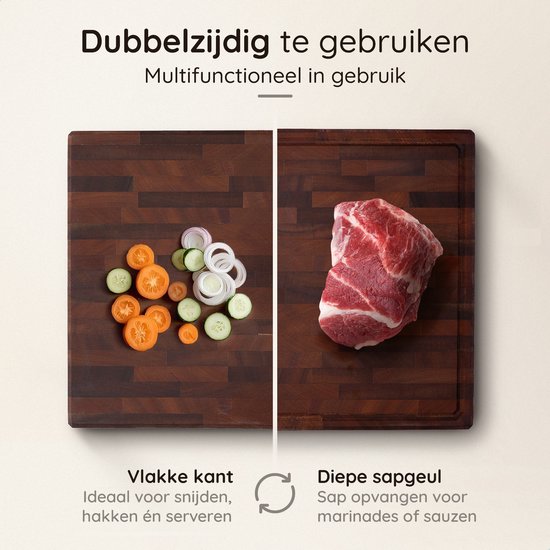 Nutzen Sie die Seite mit der tiefen Saftrinne für saftige Zutaten ohne Unordnung. Drehen Sie es um, um eine glatte Oberfläche zu erhalten - ideal zum Hacken, Schneiden oder Servieren. -