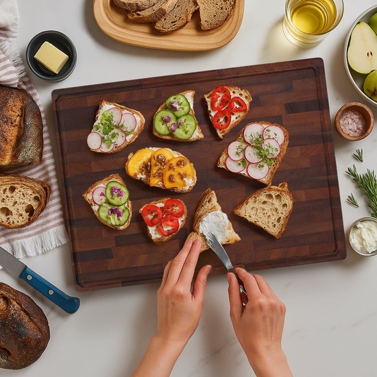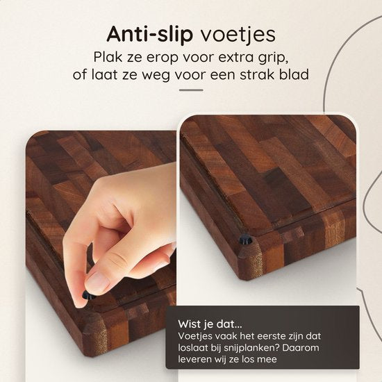 Unsere Schneidebretter sind aus hochwertigem Kopfholz gefertigt. Bei jedem Schnitt bewegen sich die Holzfasern auf natürliche Weise zur Seite und kehren zurück. Dies schützt Ihre Messer vor Abnutzung und sorgt für ein festes, stabiles Schneidegefühl. Ideal für alle, die täglich in der Küche arbeiten und Wert auf Langlebigkeit und hohe Qualität legen.