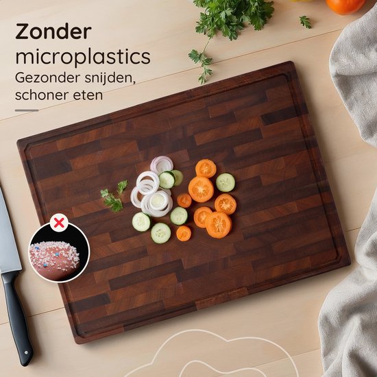 Mit seinen großzügigen Maßen von 51 x 38 x 3,8 cm bietet dieses Schneidebrett aus Walnussholz genügend Platz für alle Ihre Schneide- und Servierarbeiten. Entscheiden Sie sich bewusst für eine natürliche Alternative und halten Sie Ihre Küche frei von Mikroplastik.