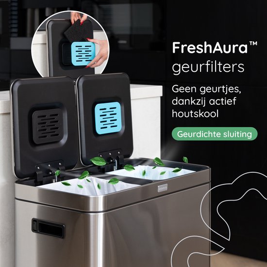 Der FreshAura Bambuskohlefilter, der einfach unter dem Deckel des Abfalleimers angebracht werden kann, verhindert effektiv unerwünschte Gerüche und sorgt für eine frische und hygienische Umgebung in Ihrer Küche oder Ihrem Büro.