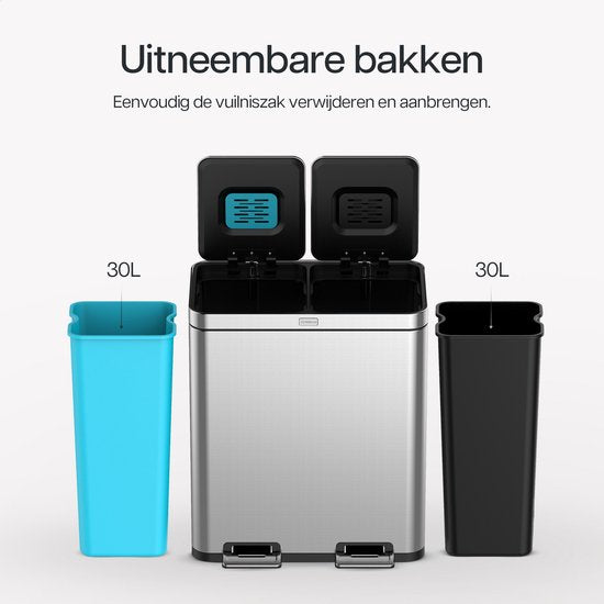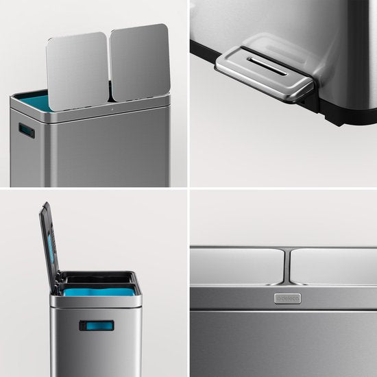 Mit dem 60-Liter-Abfalleimer von Deleca, der mit 2 Fächern zur Mülltrennung ausgestattet ist, verleihen Sie Ihrem Zuhause einen Hauch von Stil. Dieser Mülleimer ist nicht nur praktisch, sondern auch eine wertvolle Ergänzung Ihrer Einrichtung.