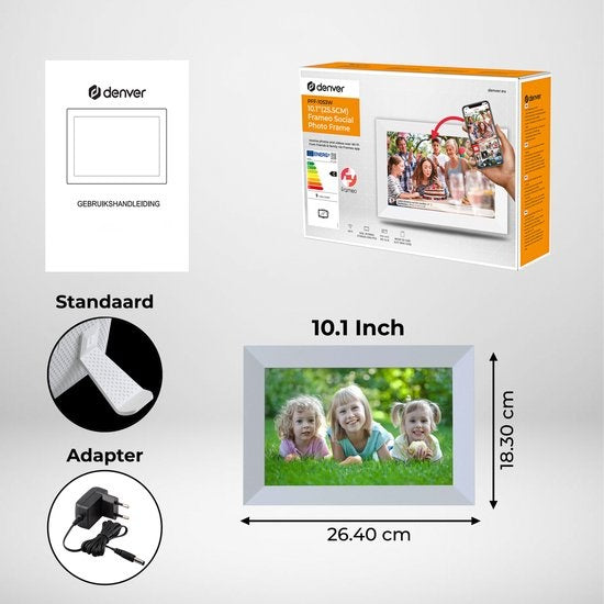 Denver Digitaler Fotorahmen 10,1-Zoll - HD - Frameo App - Fotorahmen - WiFi - IPS-Touchscreen - 16GB - PFF1053W