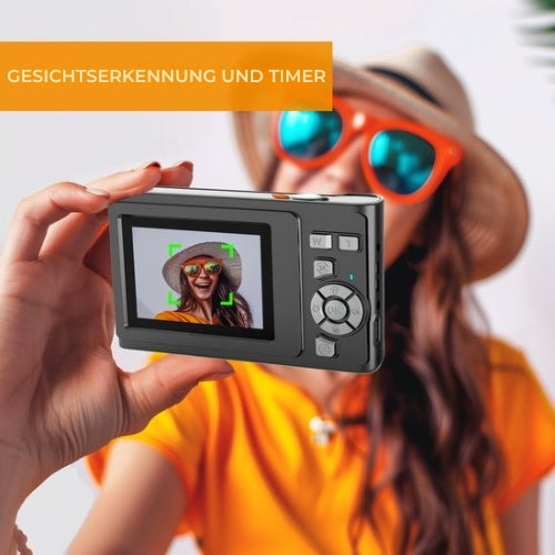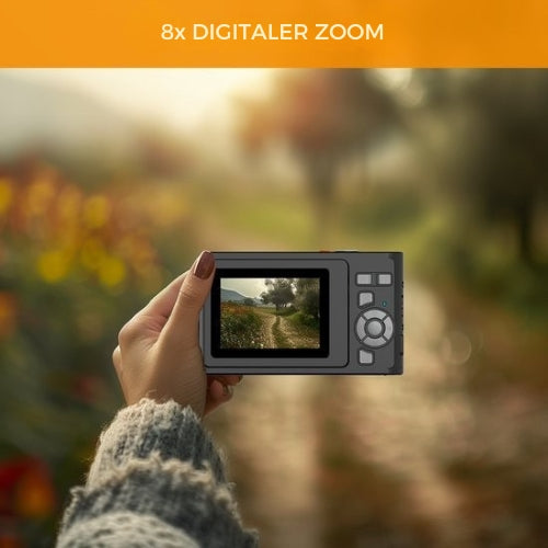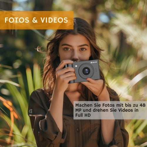 Diese schlanke Digitalkamera ist mit einem leistungsstarken 48MP-Objektiv ausgestattet und verfügt über einen 8-fachen Digitalzoom, mit dem Sie ganz einfach atemberaubende Fotos und Videos in Full HD-Auflösung aufnehmen können. Durch ihr kompaktes Design lässt sie sich bequem überall hin mitnehmen, so dass Sie immer bereit sind, besondere Momente mit Ihrer Fotokamera zu dokumentieren. Auch perfekt als Vlog-Kamera zu verwenden!