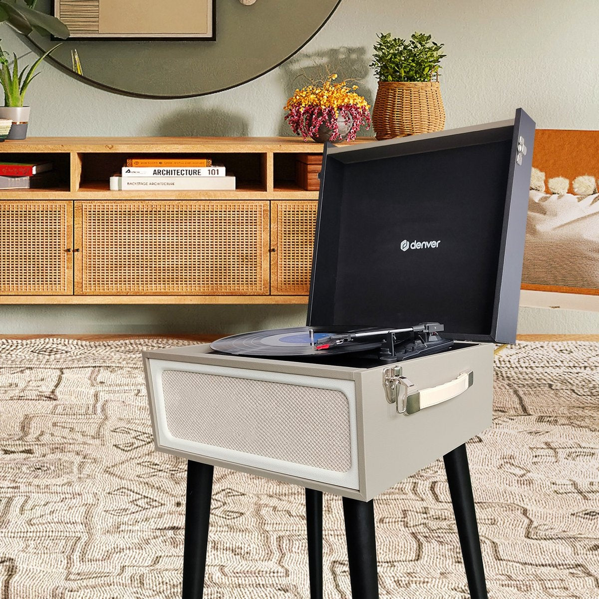 Denver - VPR250 - Plattenspieler - Bluetooth - mit Lautsprecher - FM Radio - Grau/Schwarz