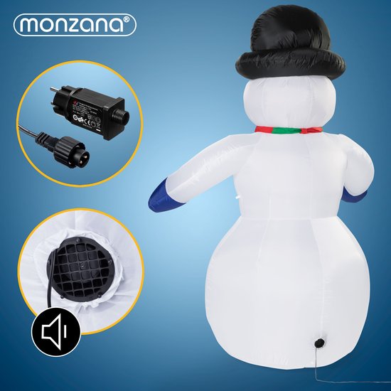 Der Schneemann ist für den Innen- und Außenbereich geeignet und wird mit der mitgelieferten elektrischen Pumpe aufgeblasen. Mit einer Leistung von 18W ist dies besonders strom- und kostensparend.
