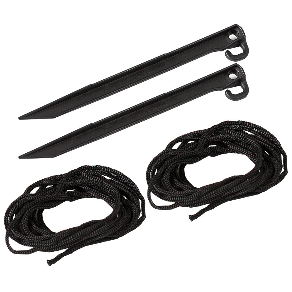 - 1x Befestigungsmaterial (2x 200cm Abspannleine, 2x Erdspieß)