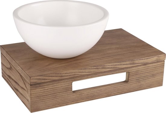 Differnz Waschbeckenablage 40x25x10cm rechteckig mit Handtuchhalter Eiche braun
