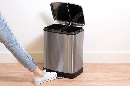 undefinedAbmessungen: 37 x 34,4 x 50,3 CM Inhalt: 2 x 12L Tretmülleimer zur Mülltrennung Leicht zu tragen Soft-Close-Mechanismus