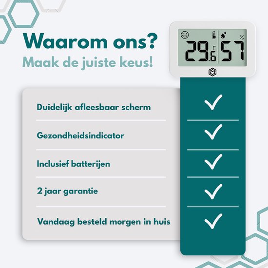 In den Niederlanden wechseln die Wetterbedingungen von Tag zu Tag stark. Denken Sie an kalte, trockene Winter und heiße, feuchte Sommer. Solche Wetterbedingungen können einen erheblichen Einfluss auf Ihre Gesundheit haben. Wenn Sie zum Beispiel unter empfindlicher Haut, Atemwegsproblemen oder Herzkrankheiten leiden, können Sie besonders anfällig für diese Umweltfaktoren sein. Mit dem Hygrometer von Ease Electronicz können Sie die Luftfeuchtigkeit und Temperatur in Ihrer Wohnung genau überwachen. Auf diese Weise können Sie die besten Entscheidungen für Ihre Gesundheit treffen.