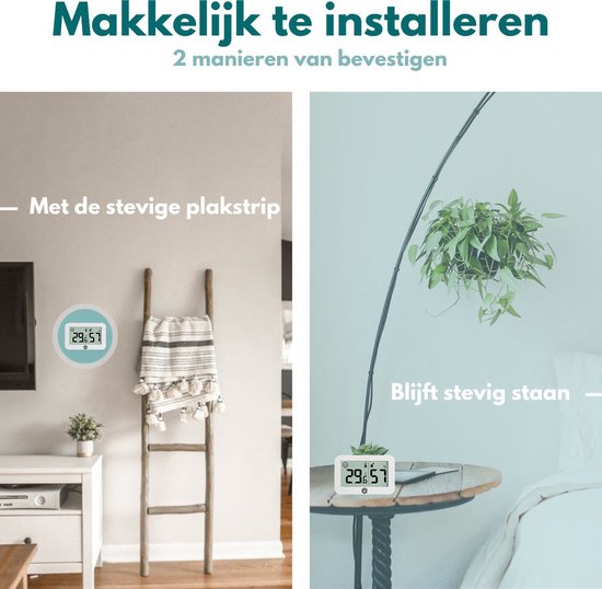 Das Ease Electronicz Hygrometer kann mit dem mitgelieferten praktischen Klebestreifen befestigt werden. Außerdem können Sie das digitale Hygrometer auch stehend platzieren, wo immer Sie wollen!