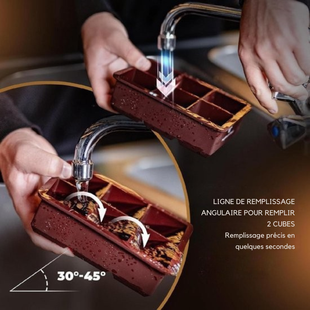 Entdecken Sie unsere XXL-Eiswürfelformen, die speziell entwickelt wurden, um kristallklares, besonders glattes und langsam schmelzendes Eis herzustellen. Dank der extra großen Eiswürfel bleiben Ihre Getränke länger kühl, ohne ihren Geschmack zu verwässern – für ein stilvolles und intensives Genusserlebnis.