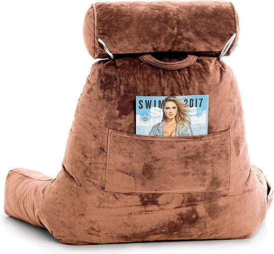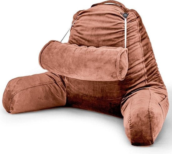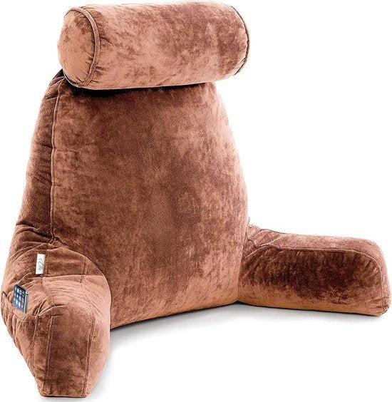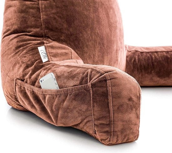 EL-Life - Lesekissen mit Nackenrolle - Unterstützung für den unteren Rücken - Entspannungskissen - Samtbraun