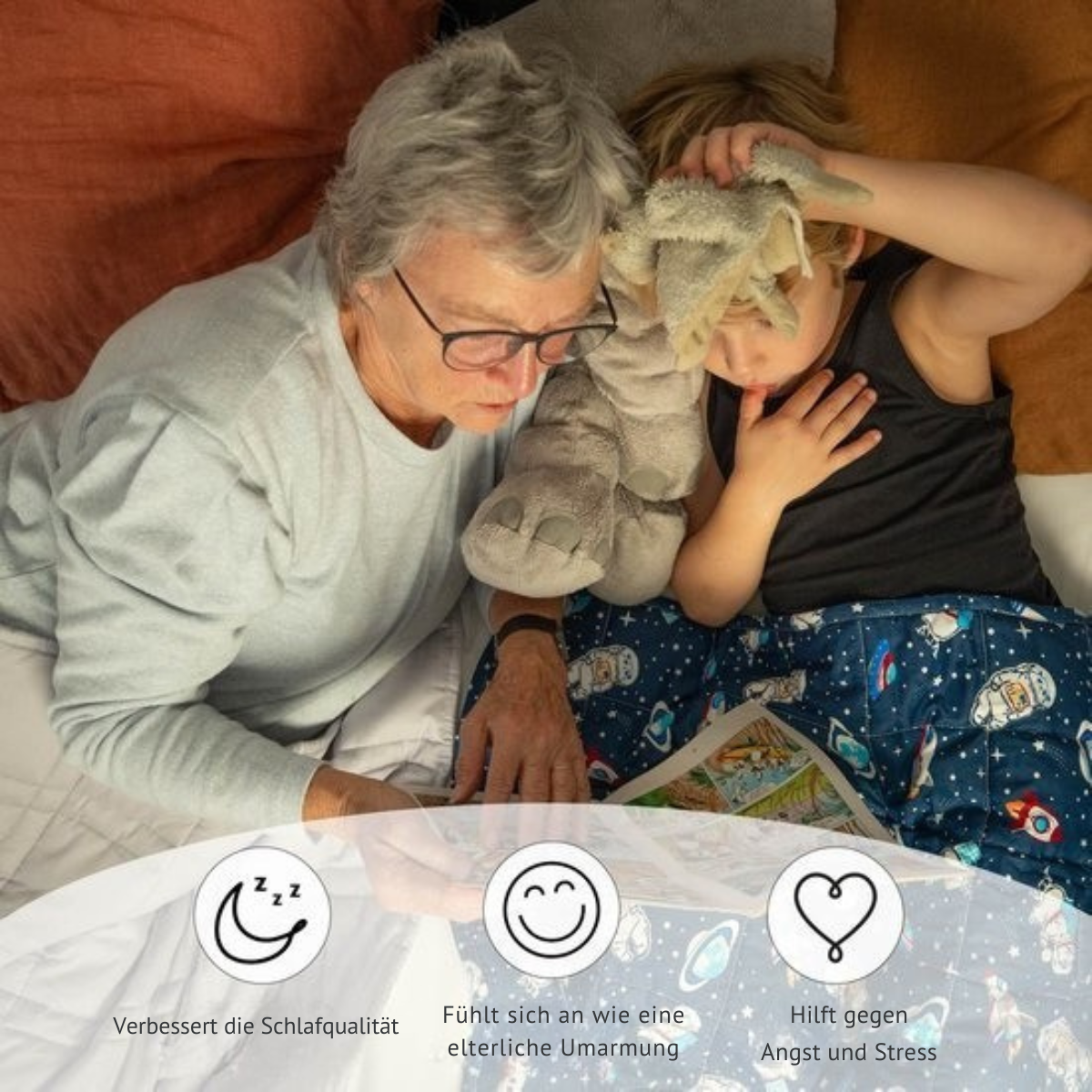 Mit unserer beschwerten Kinderdecke findet Ihr Sohn oder Ihre Tochter die Ruhe, die er oder sie braucht.