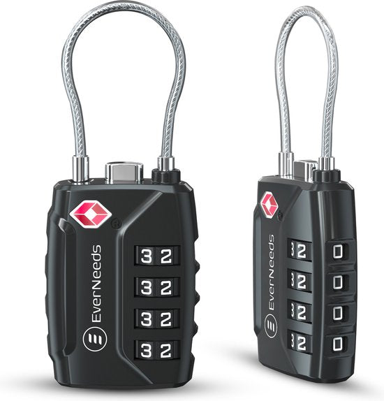 EverNeeds Kofferschloss - TSA-Schloss - 4-stelliges Vorhängeschloss - Zahlenschloss - Schwarz - 2 Stück