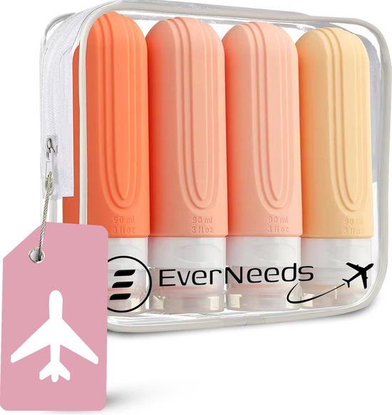 Erleben Sie den Komfort der langlebigen EverNeeds Reiseflaschen. Dieses Set aus vier 90-ml-Silikonflaschen ist perfekt für Ihr Handgepäck, sodass Sie sich bei Sicherheitskontrollen keine Sorgen machen müssen. Das Set enthält einen durchsichtigen Beutel, einen Aufkleber zum Beschriften der Flaschen und ein Etikett für Ihren Koffer, damit Ihr Gepäck leichter zu erkennen ist. Perfekt für Reisen, Sport und die Organisation zu Hause.