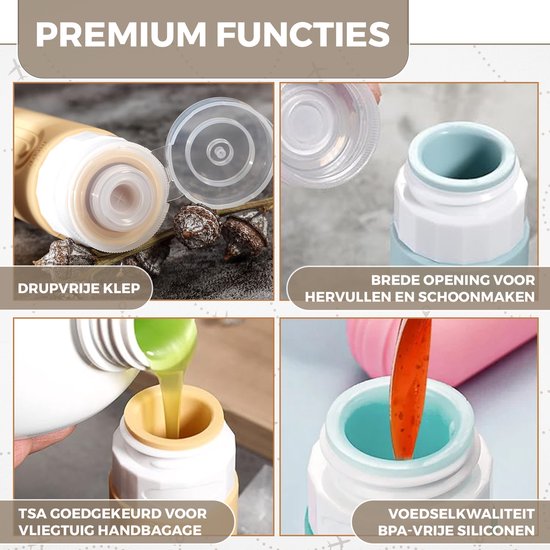 - Auslaufsichere Reiseflaschen: dreischichtige auslaufsichere Konstruktion mit tropfsicherem Verschluss und Anti-Auslauf-Ventil für präzise Dosierung
