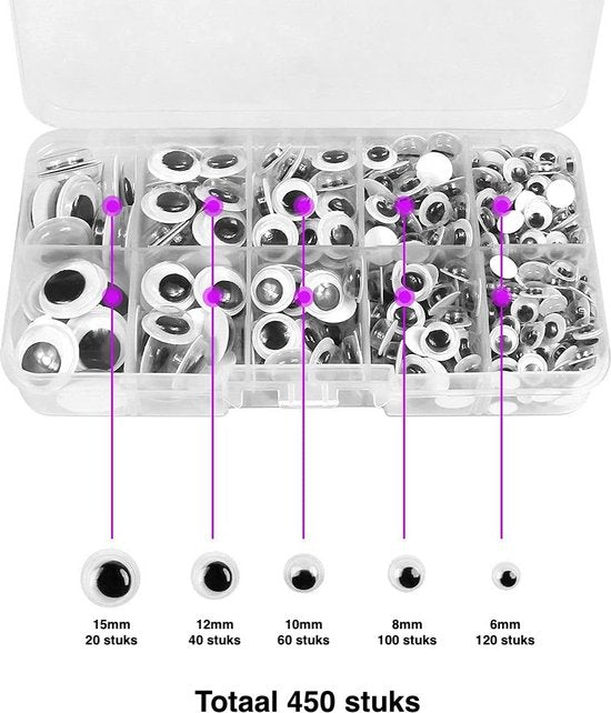 Faas Wackelaugen - 450 Stück - Selbstklebende Bastelaugen - Basteln für Kinder - Verschiedene Größen