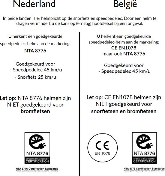 In den Niederlanden muss ein Speed Pedelec Helm das NTA 8776 Qualitätszeichen tragen.