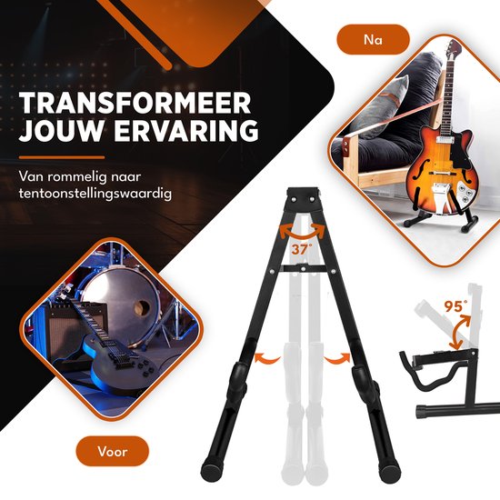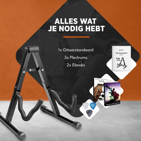 Sind Sie auf der Suche nach einem hochwertigen und stabilen Gitarrenständer, um Ihre Gitarre sicher aufzubewahren oder schön zu präsentieren? Dann ist dieser Gitarrenständer von Finesse genau das Richtige für Sie. Der starke Stahlrahmen garantiert, dass die Gitarre sicher steht, wenn Sie sie nicht spielen. Mit unserem Gitarrenständer ist Ihre Gitarre nicht nur gut aufbewahrt, sondern Sie geben dem Raum, in dem Sie sie ausstellen, auch einen stimmungsvollen Touch. Der Ständer ist für E-Gitarren, Akustikgitarren und Bassgitarren geeignet.