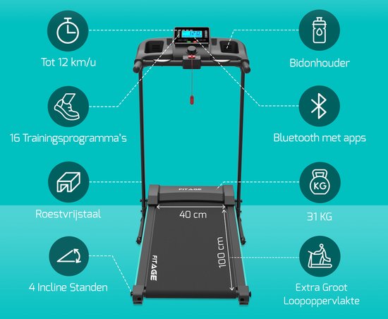FITAGE - Laufband - 12 km/h - 3 Steigungen - elektrisch
