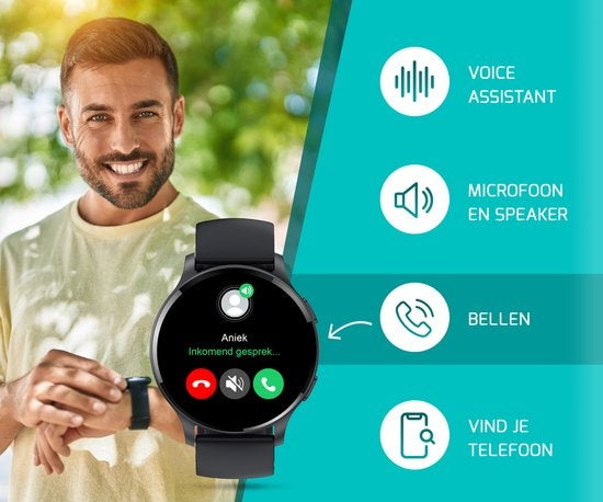 Mit unserer neuen Smartwatch haben Sie alle Funktionen, die Sie brauchen, immer zur Hand. Dank der Anruffunktion mit integriertem Mikrofon und Lautsprecher können Sie ganz einfach Anrufe annehmen und freihändig telefonieren. Nutzen Sie unseren Sprachassistenten, um schnell und einfach Informationen zu finden, ohne Ihr Telefon aus der Tasche zu nehmen. Vergessen Sie oft, wo Sie Ihr Telefon hingelegt haben? Kein Grund zur Sorge! Mit der Funktion Telefon suchen" auf unserer Smartwatch finden Sie Ihr Telefon innerhalb von Sekunden.