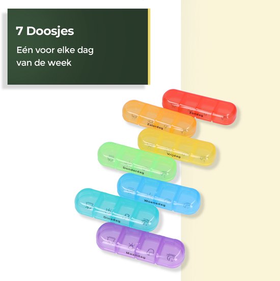 Die 7 verschiedenen Farben der herausnehmbaren Fächer machen es leicht, den richtigen Tag zu erkennen, was die Medikamenteneinnahme noch einfacher macht.