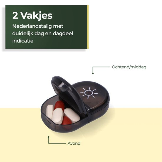 Diese Pillenbox hat den Vorteil, dass sie 7 Tage mit jeweils 2 Fächern hat, was insgesamt 14 Fächer ergibt.