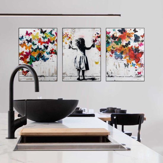 Dieses Set enthält drei Slim Frames. Die atemberaubenden Kunstdrucke sind auf eine 3 mm dicke MDF-Platte digitalisiert. Die eleganten Drucke werden von einem schlanken Rahmen umrahmt. Sie können diese Wanddekoration mit dem passenden Rahmen entweder hinstellen oder aufhängen. Durch die Kombination der Slim Frames können Sie eine schöne und zeitlose Dekoration für jeden Raum kreieren.