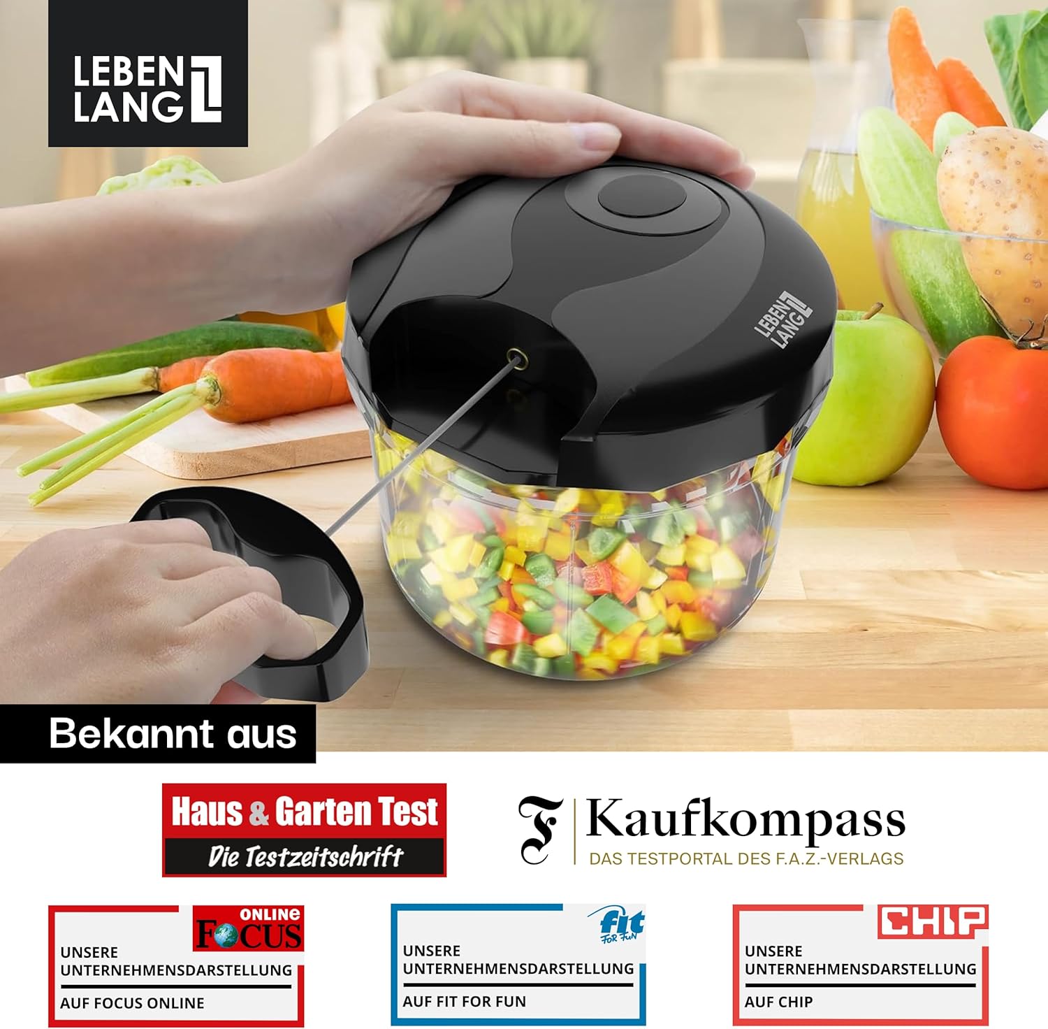 Der LEBENLANG Hand-Multifunktionshacker ist das ideale Werkzeug für jede Küche. Mit seinem praktischen Design und seiner effizienten Bedienung sparen Sie Zeit und Mühe bei der Zubereitung Ihrer Gerichte. Dieser Zerkleinerer ist speziell für das schnelle und einfache Zerkleinern von Gemüse, Obst, Kräutern, Knoblauch und vielem mehr konzipiert. Der manuelle Betrieb ermöglicht es Ihnen, schnell und gleichmäßig zu hacken, ohne dass Sie teure Elektrogeräte benötigen.