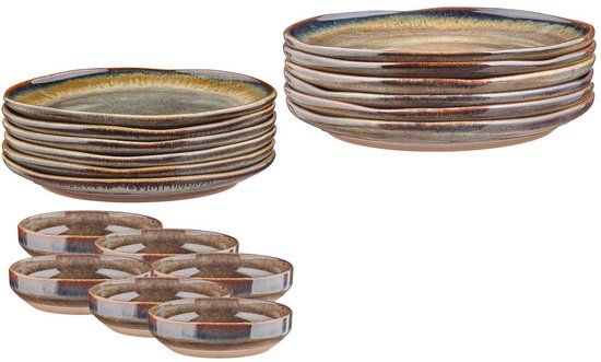 Das Essentials-Geschirr enthält die drei wichtigsten Teile für sechs Personen: eine geräumige Schüssel, einen großen Teller und einen kleinen Teller. Das ist das Minimum an Geschirr, das man täglich für alle Mahlzeiten benötigt.