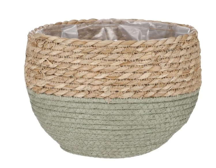 MICA Decorations JORCK Pflanzkorb 26x24 cm - Geflochtenes Seegras mit gedämpfter grüner Unterseite