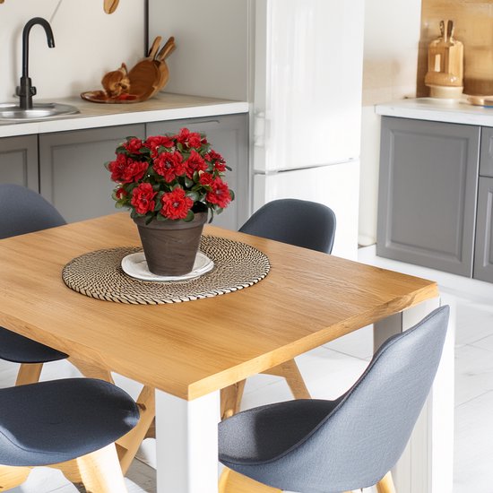 Rote Kunstpflanze Azalee mit einer Größe von 31 cm im Topf. Diese Azalee von Mica Decorations bringt ohne großen Aufwand Farbe in Ihr Zuhause. Mit ihren fröhlichen Blüten und naturgetreuen Blättern ist diese Kunstpflanze perfekt für alle, die keinen grünen Daumen haben. Der elegante Topf macht es einfach, sie auf einem Tisch, einem Schrank oder einer Fensterbank zu platzieren. So haben Sie immer eine fröhliche und verspielte Pflanze im Haus, die das ganze Jahr über blüht! Diese schöne Azalee ist in einem Terrakotta-Topf mit basaltgrauen Farben erhältlich.