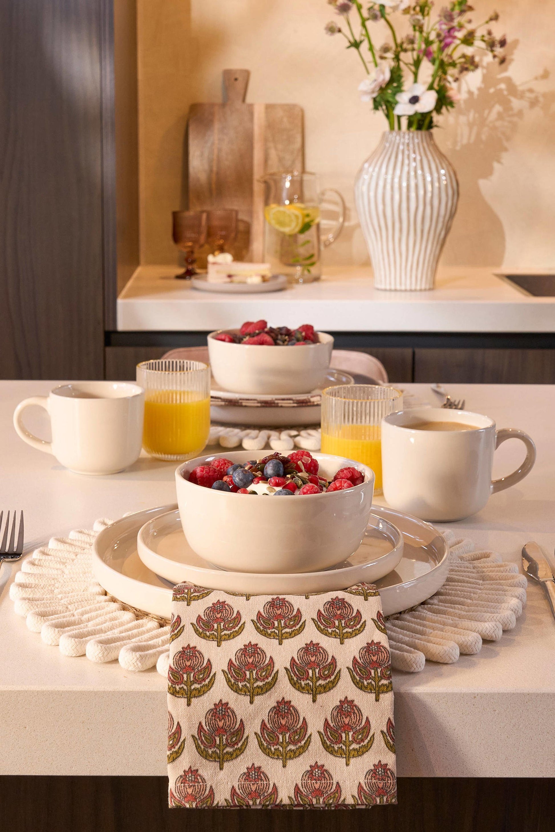 Das Set enthält vier Essteller, vier Frühstücksteller, vier Tassen und vier Schüsseln – alles, was Sie für einen komplett gedeckten Tisch für vier Personen benötigen. Mit seinem schlichten Design und der eleganten Ausführung bringt das Geschirr Ozzu von Mica Decorations Stil und Ruhe in jede Mahlzeit.
