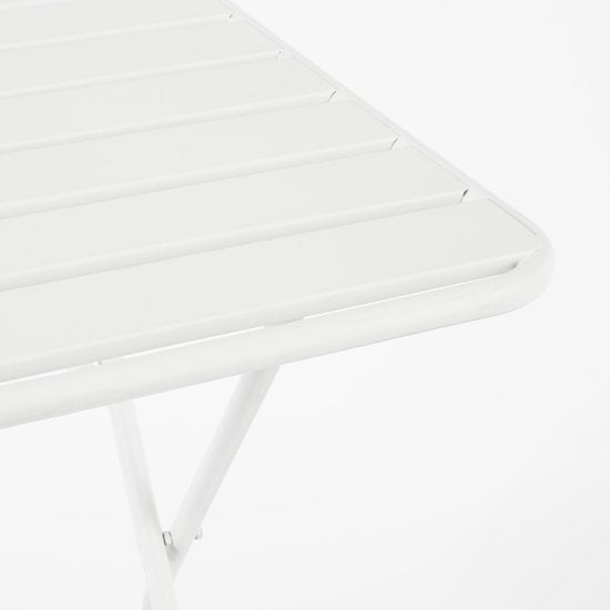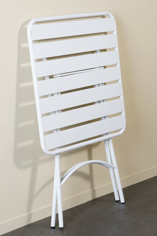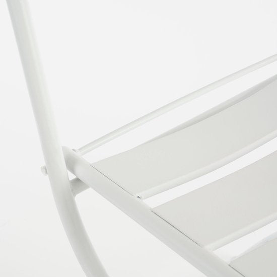 Mit dem Bistro-Set Evita von Mica Decorations schaffen Sie im Handumdrehen eine attraktive Sitzgelegenheit in Ihrem Garten mit einem modernen Look. Das Set aus weißem Metall hat eine schlichte Oberfläche, die sich perfekt mit verschiedenen Stilen kombinieren lässt und auf jeder Terrasse zur Geltung kommt. Die klappbaren Bistrostühle und der Bistrotisch lassen sich schnell und einfach für Gäste aufstellen. Außerdem sind sie den ganzen Sommer über verwendbar und können dann einfach im Schuppen verstaut werden. Das Bistro-Set Evita besteht aus zwei Bistrostühlen mit den Maßen L44 x B56,5 x H87 cm und einem Bistrotisch mit den Maßen L60 x B60 x H74,5 cm.