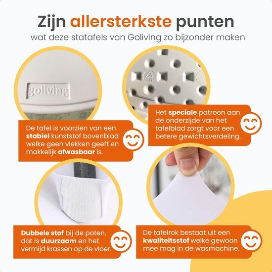Goliving Bartisch - Inklusive Tischabdeckung - Tischschürze - Zusammenklappbar - Stabiler Partytisch - Für den Innen- und Außenbereich - Belastbarkeit 50kg - Ø80 x 110 cm - 8,5 kg - Weiß