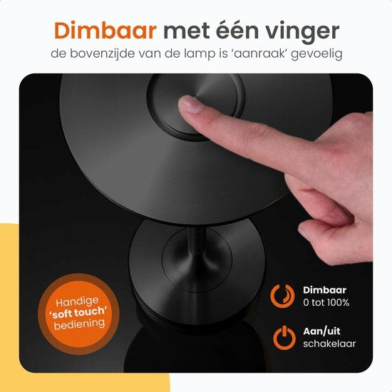 Goliving Tischlampe Wiederaufladbar - Kabellos und dimmbar - Moderne Touch-Lampe - Nachtlampe für das Schlafzimmer - Spritzwassergeschützt - 27 cm - Schwarz