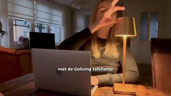 Goliving Tischlampe Wiederaufladbar - Kabellos und dimmbar - Moderne Touch-Lampe - Nachtlampe für das Schlafzimmer - 38 cm - Gold