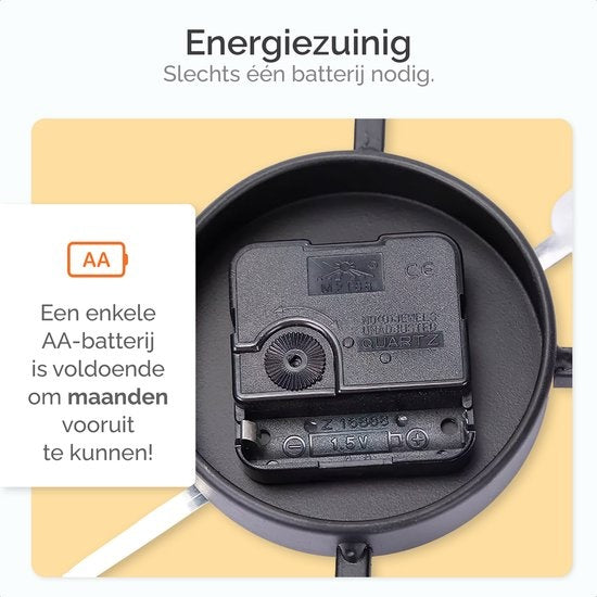 Dank ihres geräuscharmen Quarzwerks ist die Goliving-Wanduhr außerdem sehr energiesparend. Mit nur einer AA-Batterie kann die Uhr monatelang betrieben werden.