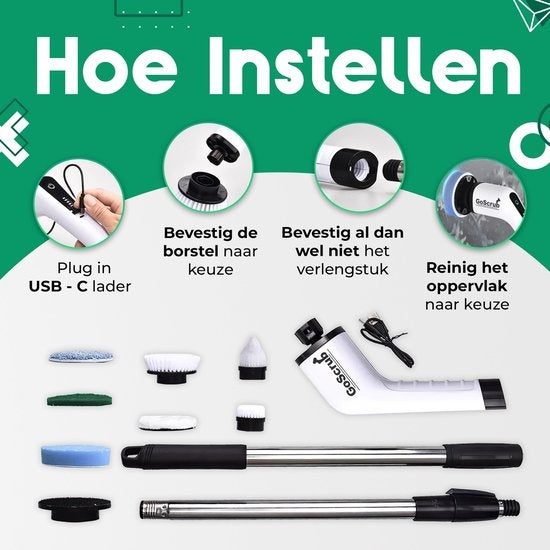 GoScrub® Cleaning King V1 - Elektrische Reinigungsbürste - Elektrische Schrubbbürste - für Bad oder Küche - Schrubber mit Griff - 9 Aufsätze