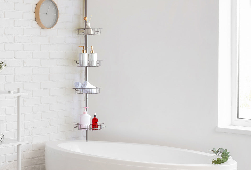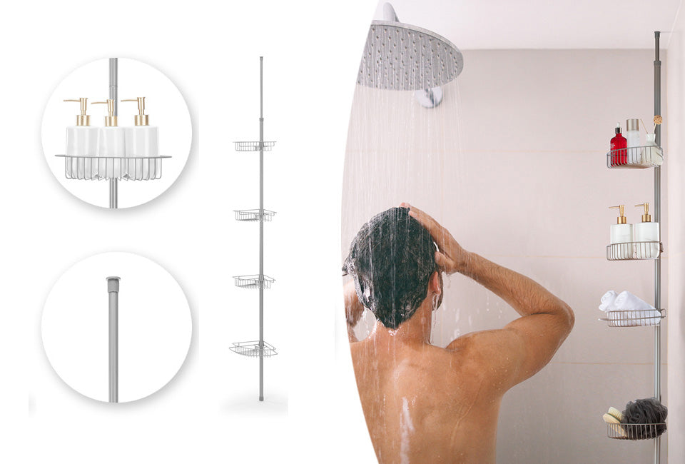 Du kommst nach einem anstrengenden Tag nach Hause und hast Lust auf eine herrlich belebende Dusche. Shampoo und Seife liegen bereit, vielleicht auch ein kleines Peeling, aber wohin mit dem Duschzeug? Auf den Boden! Keineswegs: Mit dieser ausziehbaren Duschablage mit 4 Körben haben Sie genügend Stauraum für alle Ihre Duschutensilien.