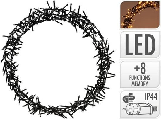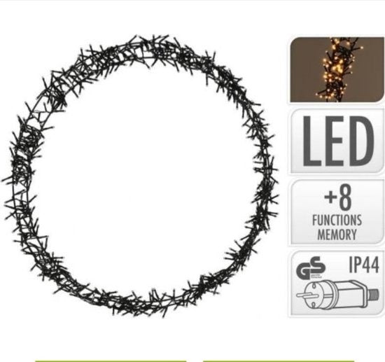 Schöne Beleuchtung für die Weihnachtszeit. D58cm mit 300 LED-Lichtern, 2cm zwischen den Lichtern und einer 3-Meter-Leitung. IP-44 zertifiziert. Die Lichter können auf 8 Einstellungen eingestellt werden