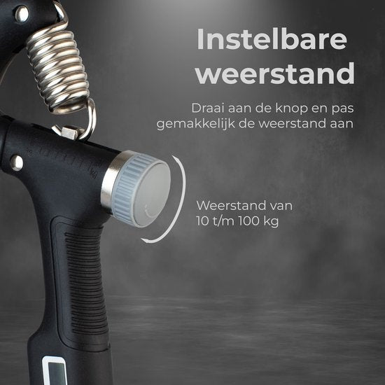 Handtrainerset - 5-teilig - 10 bis 100 KG - Digitaler Zähler - Hand-, Unterarm-, Handgelenks- & Fingertrainer - Stressball, Squeephalter, Stretcher & Grip Ball